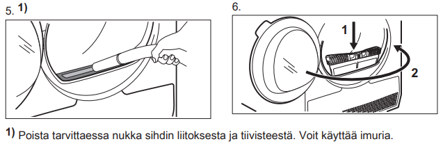 - Kuivausrummun kuivaustulos on huono ja pyykki on kosteaa kuivauksen jälkeen