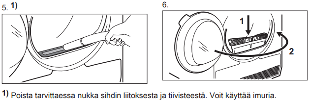 6. Puhdista lauhdutin (lämpöpumppukuivausrummut ja kondensoivat kuivausrummut).