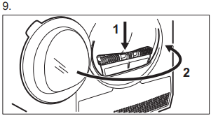 8. Varmista, että tuuletusaukko on auki ja puhdas (ulkoilmaan kosteuden poistavat kuivausrummut).
