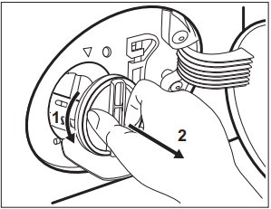 Jos koneessa on vettä, luukkua ei voi avata. Voit avata luukun, kun vesi on pumpattu ulos. Tarvittaessa voi suorittaa koneen hätätyhjennyksen laitteen nukkasihdin kautta.