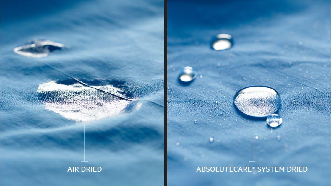 AbsoluteCare-järjestelmämme avulla erityinen ulkoiluvaatteesi vettä hylkivä aine säilyy ja palautetaan paremmin kuin ilmakuivauksessa. DelicateCare säätää rummun lämpötilaa ja liikettä kankaiden suojaamiseksi ulkokäyttöön varmistaen, että ne saavat juuri oikean määrän lämpöä.