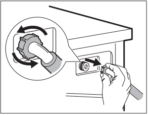 - Letkun vuodot voivat saada veden virtaamaan takaisin koneeseen takapaneelin vieressä, joten tarkista vesiletkun liitäntä hanaan ja koneeseen.