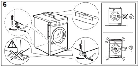 Voit tarvittaessa säätää pyykinpesukoneen jalkoja. Tarkista pesukoneen suoruus vesivaa'alla.